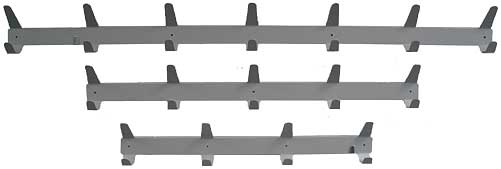 1/4" mounting holes are spaced every 16", with hooks 8" apart on most models
